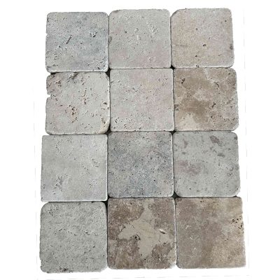 Travertino natural SILVER 20, formato, 20,3×20,3cm. Grosor de 1,2cm. Acabado natural, poro abierto, cantos envejecidos. Precio por m2